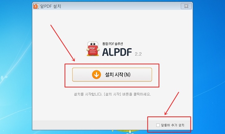 라이선스에 동의를 클릭 하셨다면 다음 창에서 알툴바 추가 설치 부분을 클릭 해제 하고 설치 시작을 클릭 합니다.