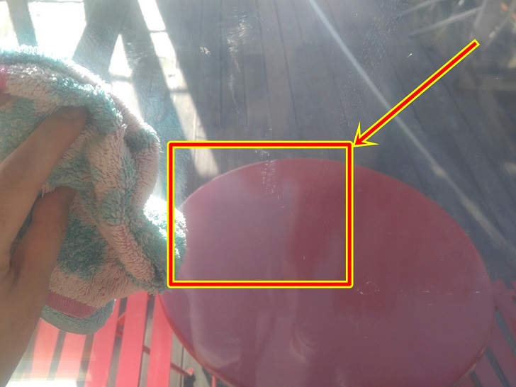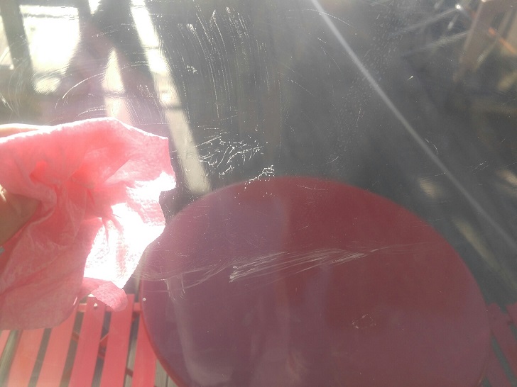 마지막으로 마른 수건으로 문질러 주시면 오늘의 주제인 유리창에 붙은 스티커 테이프 자국 없애는 법이 완료가 됩니다.