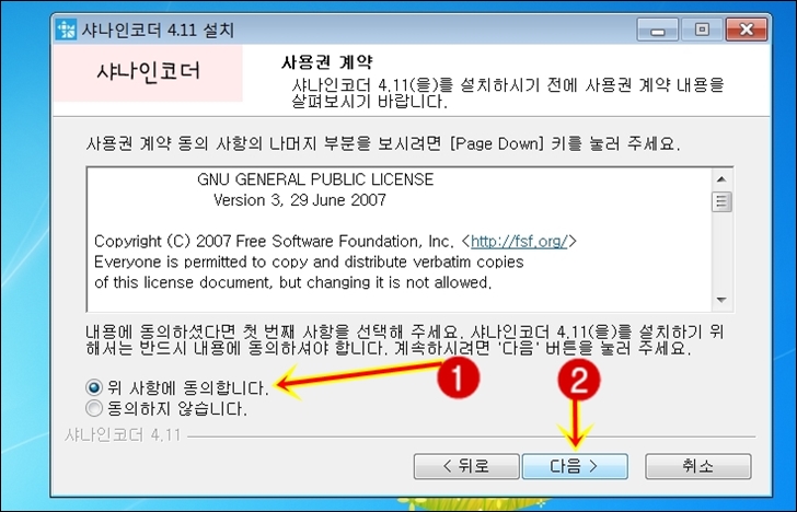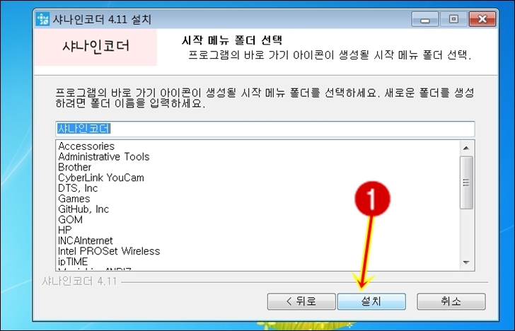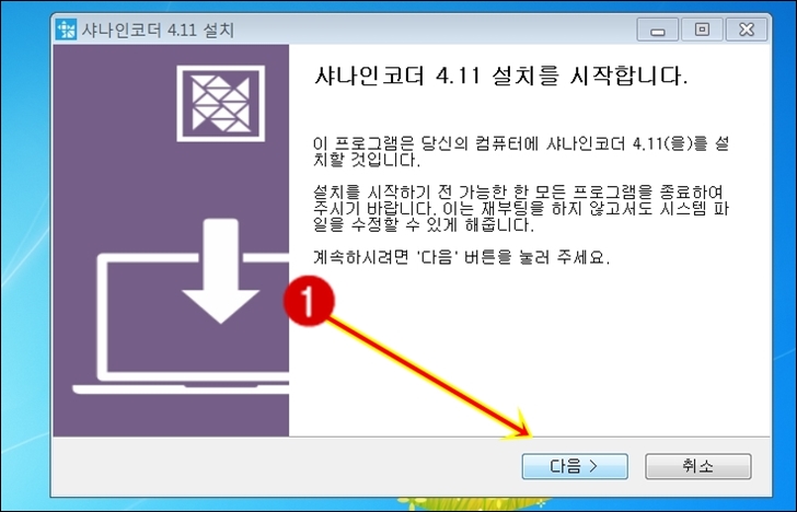 샤나인코더 설치프로그램을 더블클릭 하여 실행 합니다.