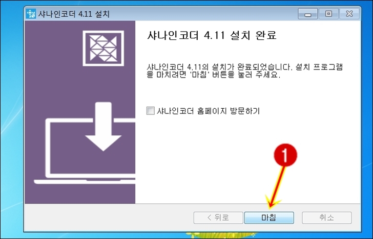 설치가 완료 되었으면 마침을 클릭하여 샤나인코더 4.11 설치를 마무리 합니다.