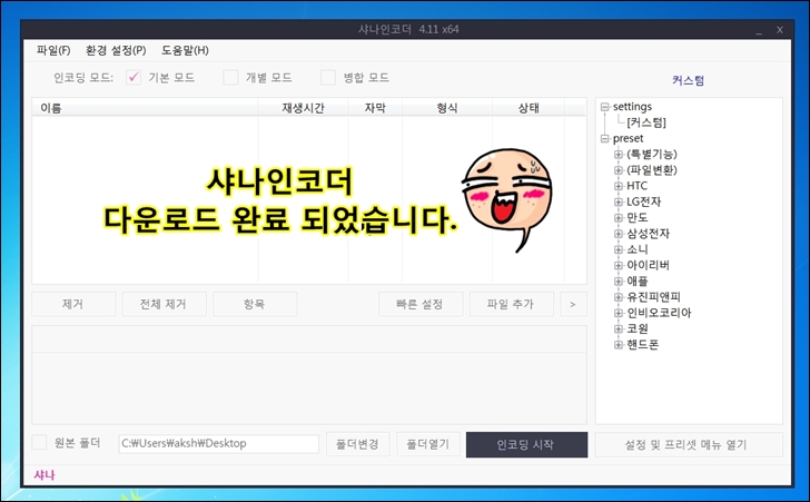 샤나인코더 다운로드 마무리.