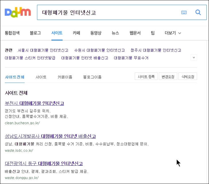 ex) 부천시 대형폐기물 인터넷신고 / 고양시 대형폐기물 인터넷신고 / 대형폐기물 인터넷신고 등.