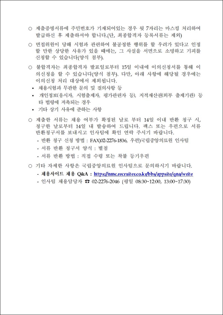 국립중앙의료원 채용공고