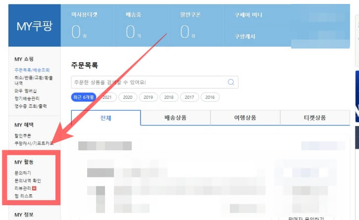 쿠팡 문의내역 삭제 및 확인방법 2가지