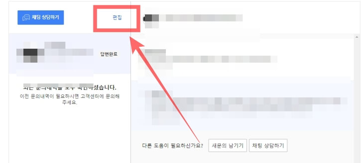 해당 문의내역 위쪽에 "편집" 을 클릭 합니다.