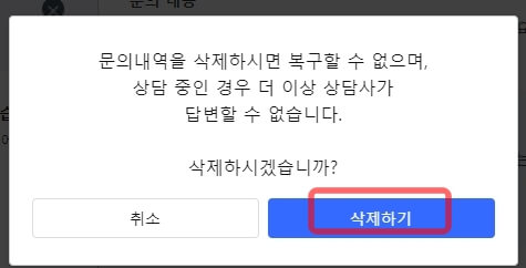 3. 문의내역 삭제방법.